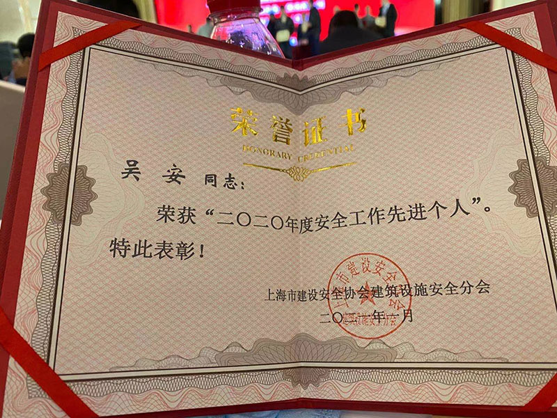 法適達公司榮獲上海市建設安全協會建筑設施安全分會頒發的安全工作先進企業以及個人先進